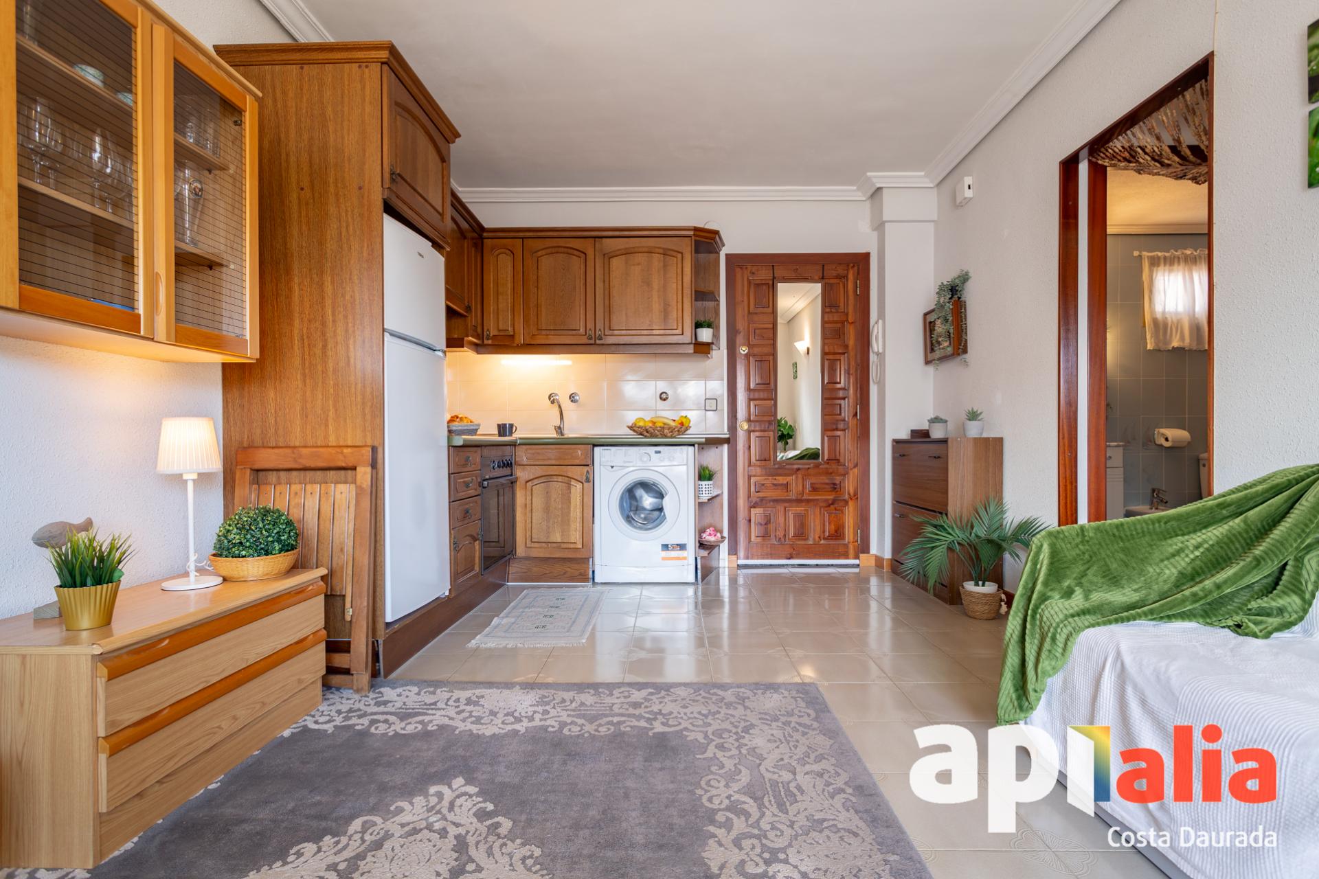 Descubre este encantador piso situado en última planta, ideal para quienes buscan luz, comodidad y cercanía al mar. La vivienda cuenta con 1 dormitorio, un amplio cuarto de baño y un espacioso salón-comedor con cocina abierta, que crea un ambiente moderno y funcional. Gracias a su orientación este, el piso disfruta de abundante luz natural durante las mañanas, aportando calidez y bienestar a cada estancia. El gran protagonista es su terraza de 13 m , perfecta para desayunos al aire libre, momentos de relax o reuniones con amigos. Ubicación inmejorable: a solo 250 metros de la playa y a 250 metros de Mercadona, con todos los servicios a un paso, lo que lo convierte en una excelente opción tanto como vivienda habitual, segunda residencia o inversión. Una oportunidad única para disfrutar del estilo de vida mediterráneo con todas las comodidades. EXCLUSIVA APIALIA COSTA DAURADA. * Mobiliario, electrodomésticos y decoración a consultar. * El precio de venta no incluye impuestos, ni gastos de Notario ni Registro. Honorarios de agencia incluidos, a cargo del vendedor. ?* ?Los datos expuestos son orientativos y pueden estar sujetos a errores u omisiones involuntarias.